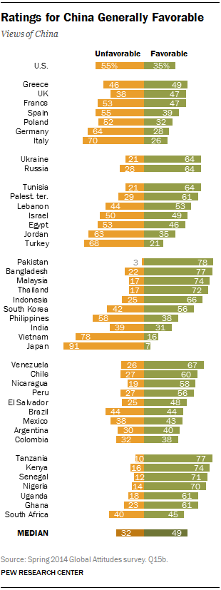 Ratings for China Generally Favorable