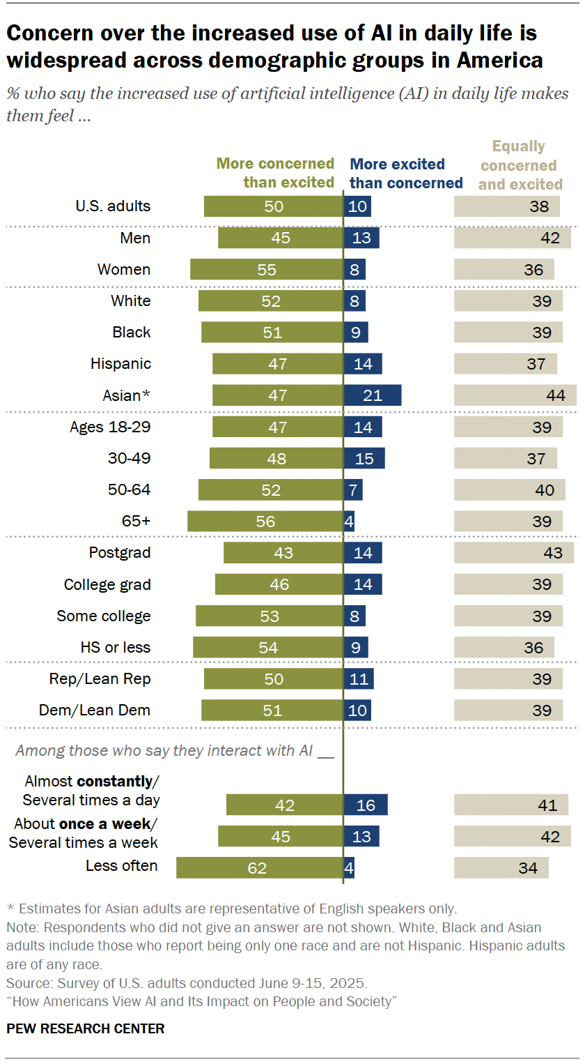 Concern over the increased use of AI in daily life is widespread across demographic groups in America