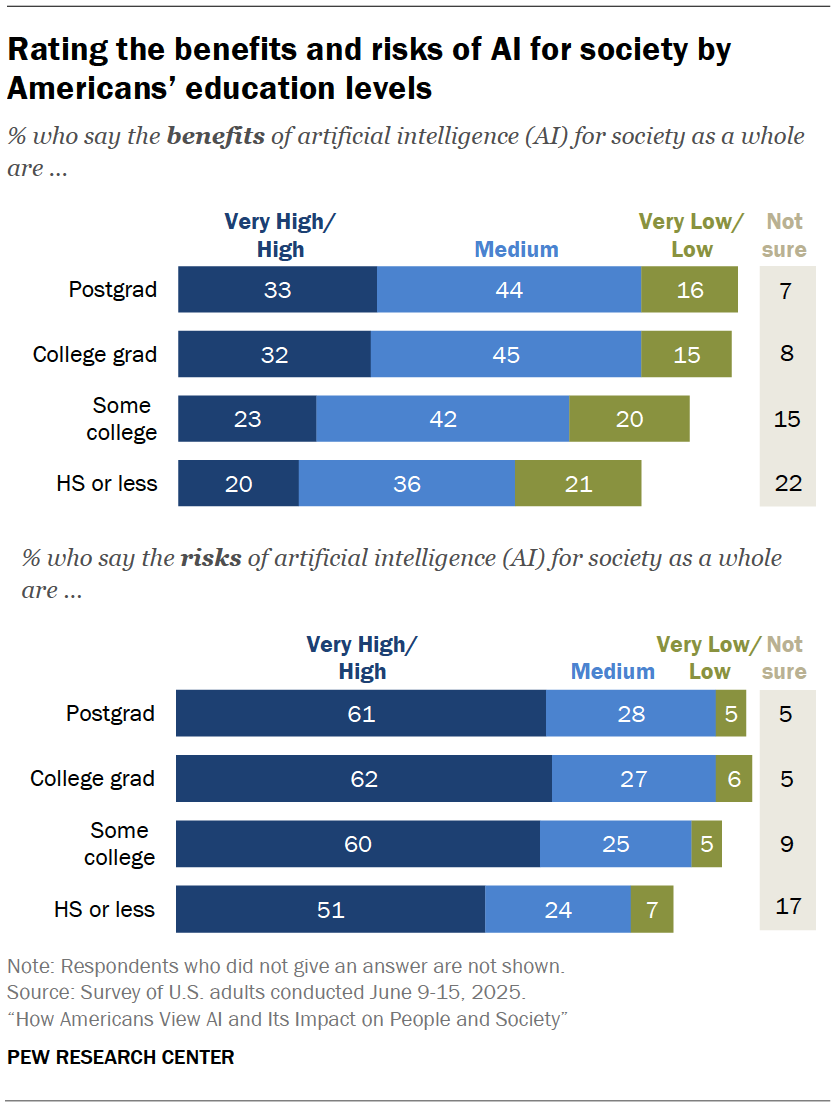 Rating the benefits and risks of AI for society by Americans’ education levels
