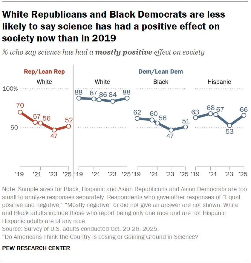 DownloadWhite Republicans and Black Democrats are less likely to say science has had a positive effect on society now than in 2019 ← Prev Page 1234 Next Page →
